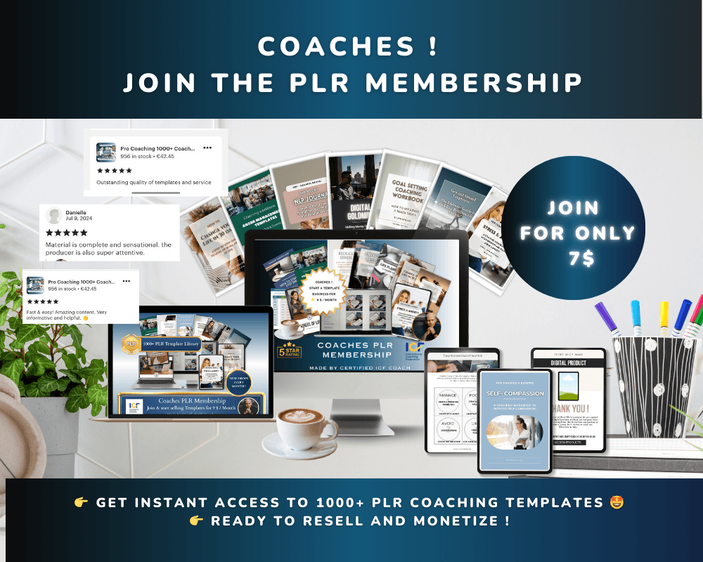✅ Join today and unlock 1000+ PLR Coaching templates you can resell instantly + new drops of ready-to-sell templates every month, that you